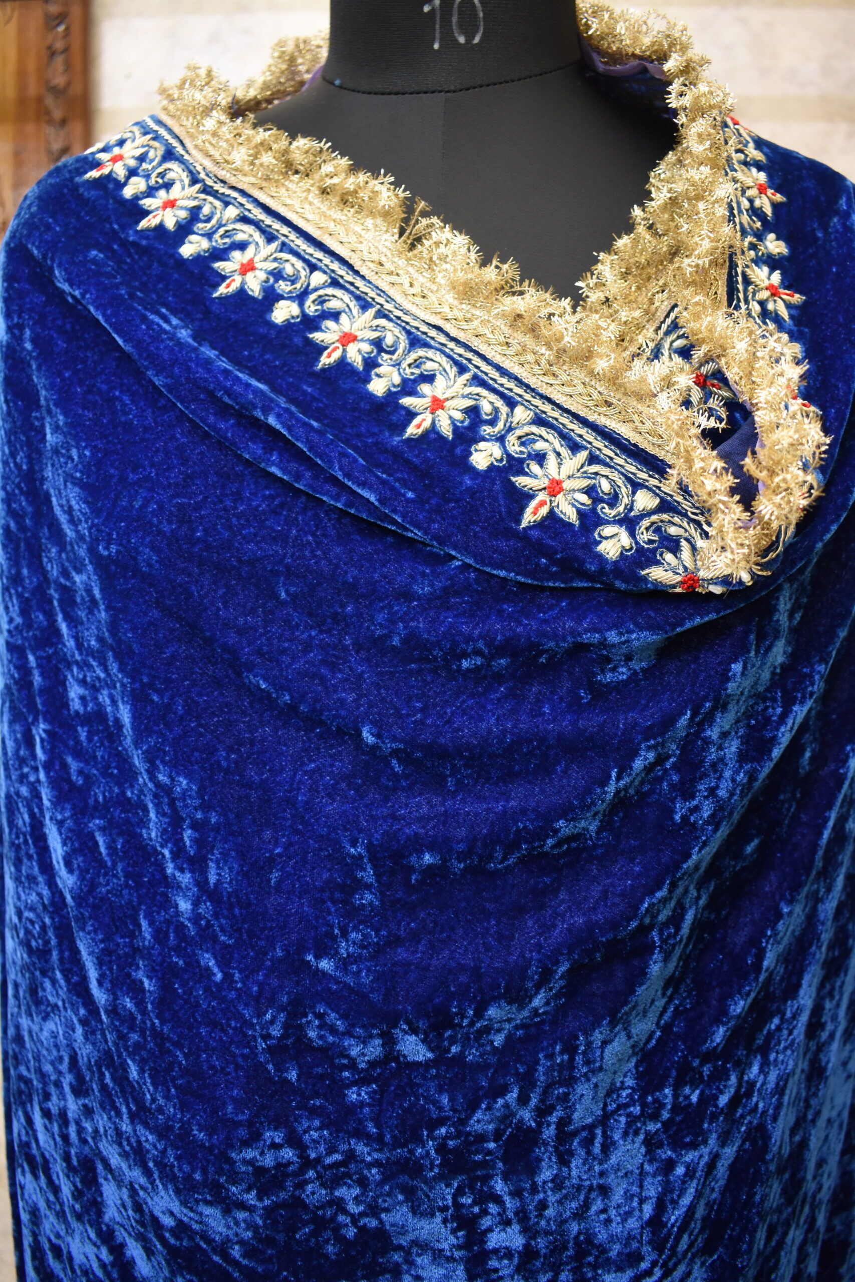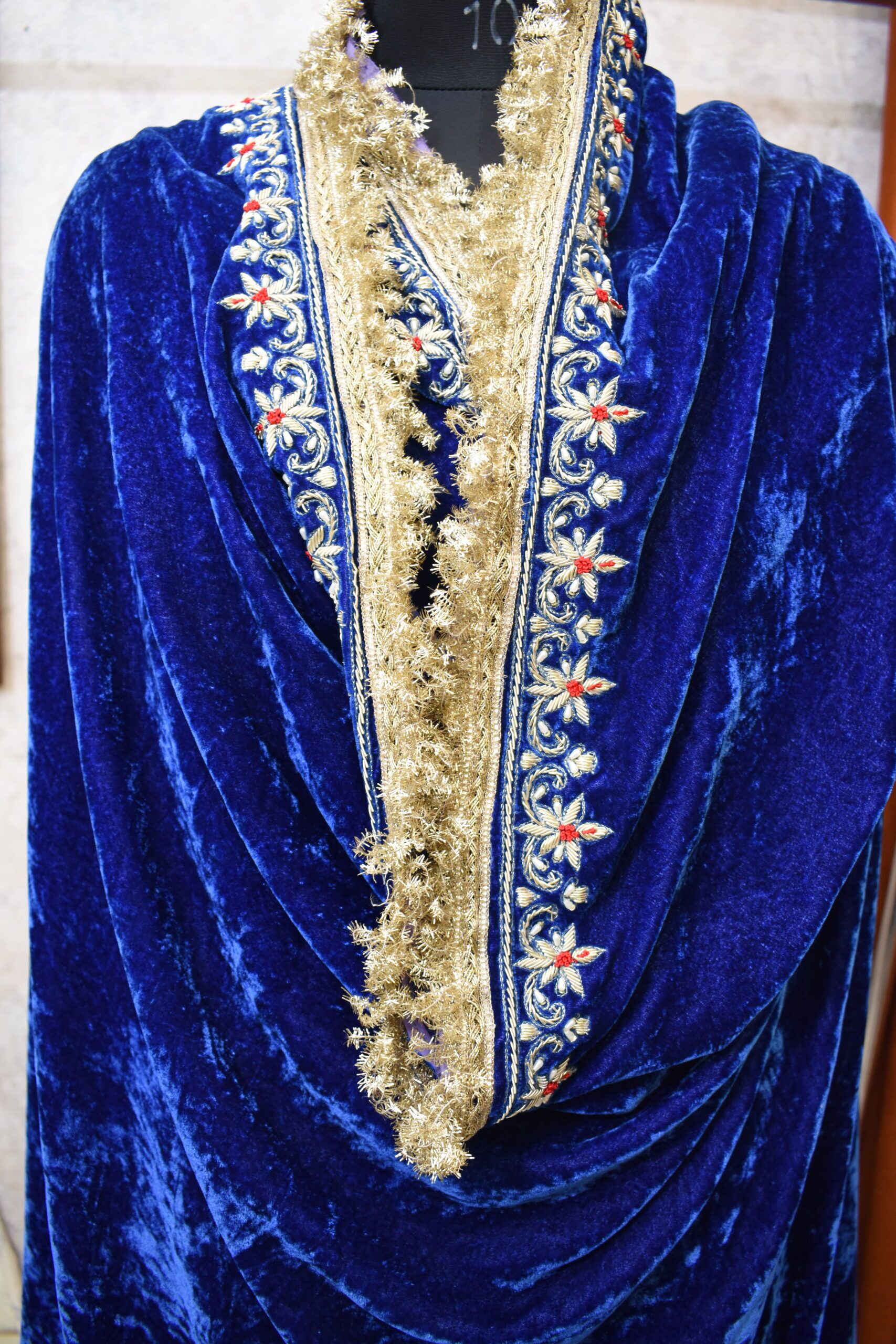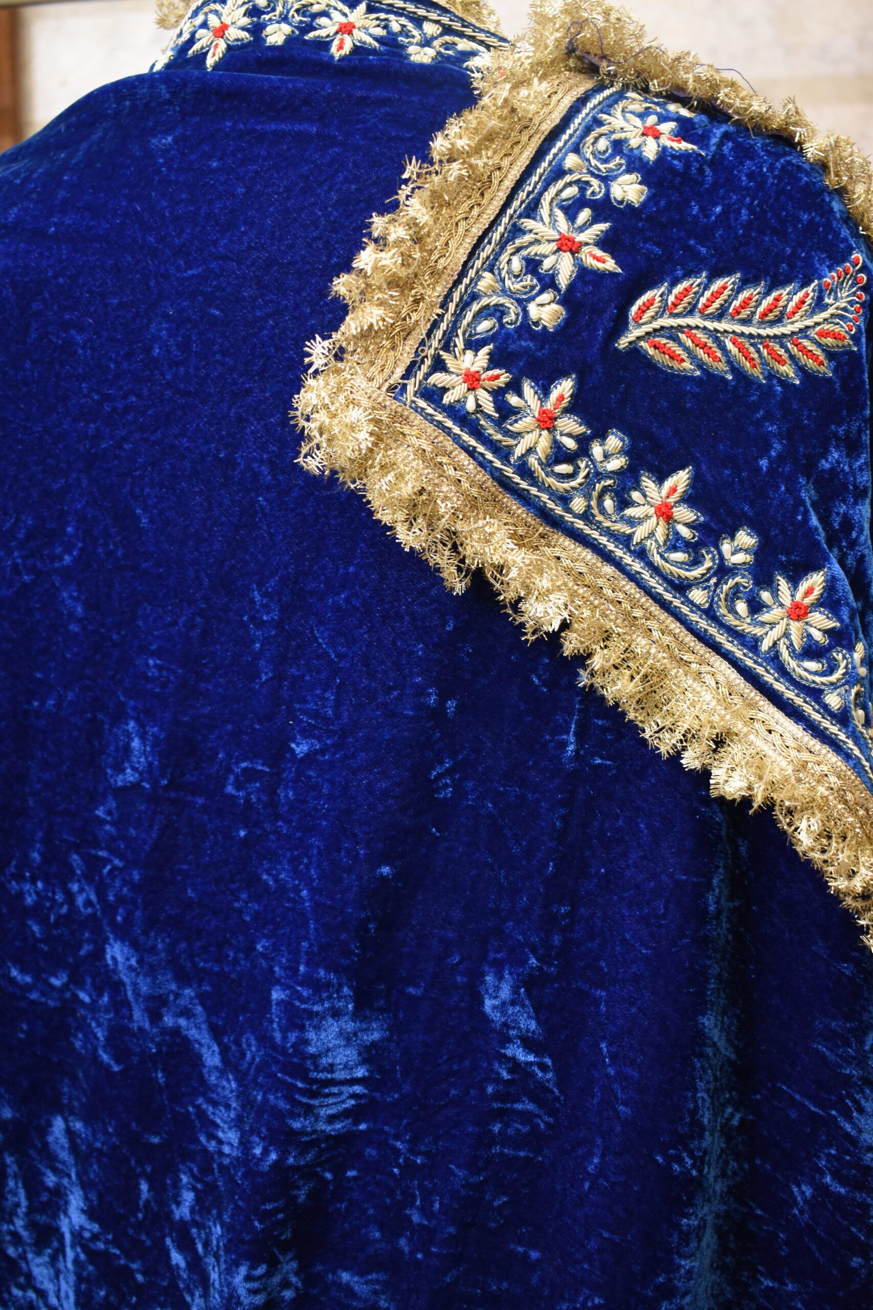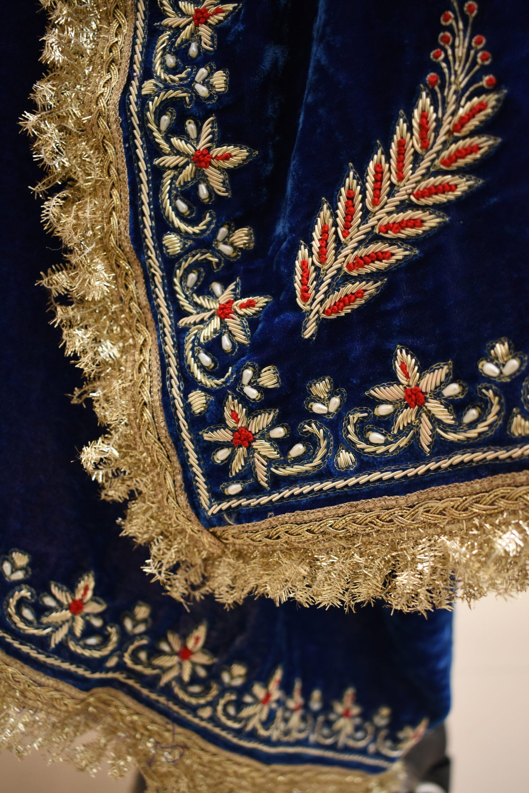 Silk Velvet Zardozi Shawl: Design and Detailing
